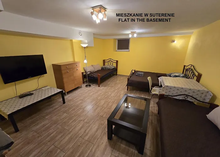 - ❓¿Cuánto cuesta alquilar el apartamento Mieszkanie W Suterenie?Una estancia de una noche en el apartamento Mieszkanie W Suterenie te costará 47 €.